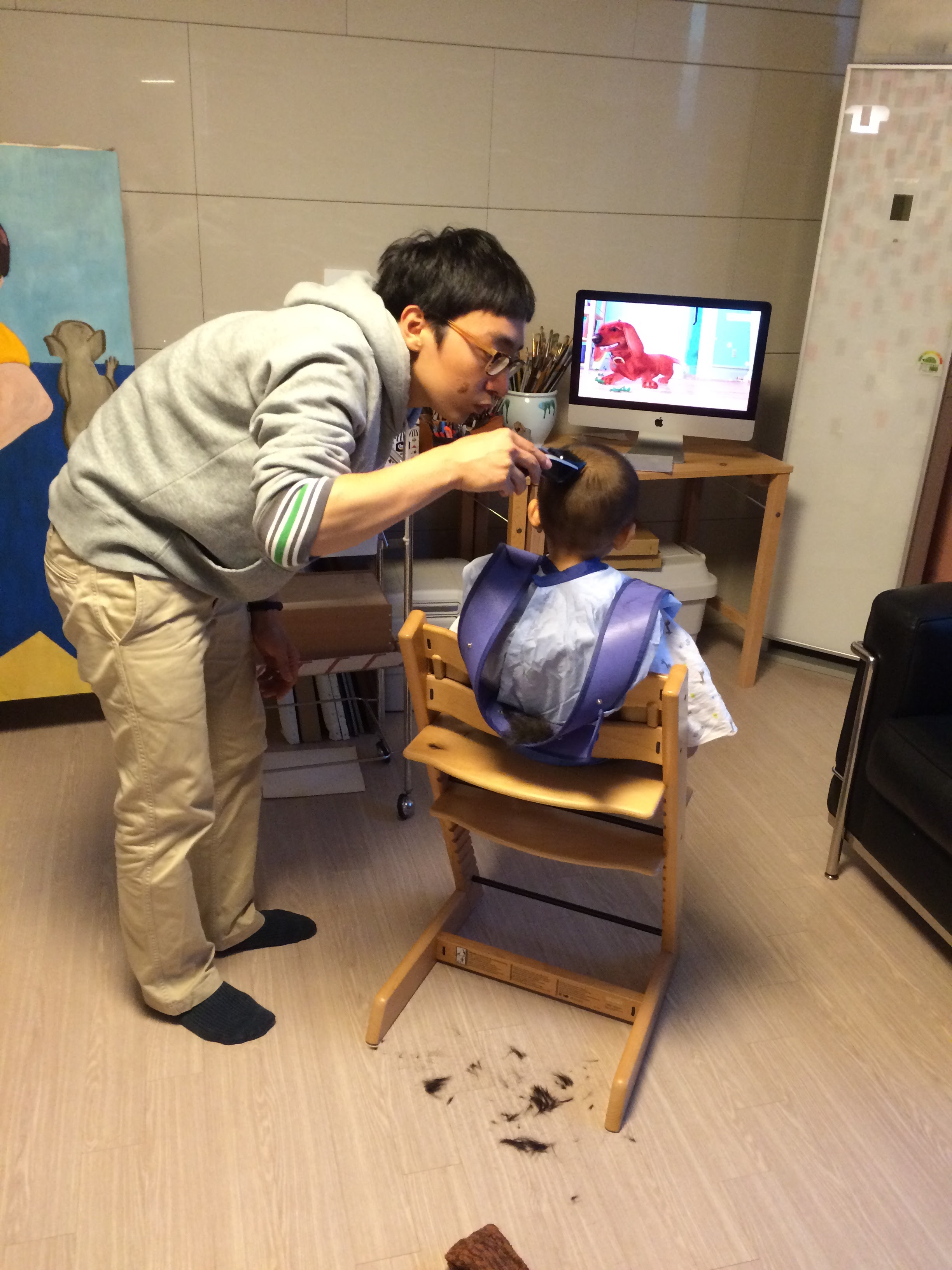 준성이 이발을 해 줬습니다.