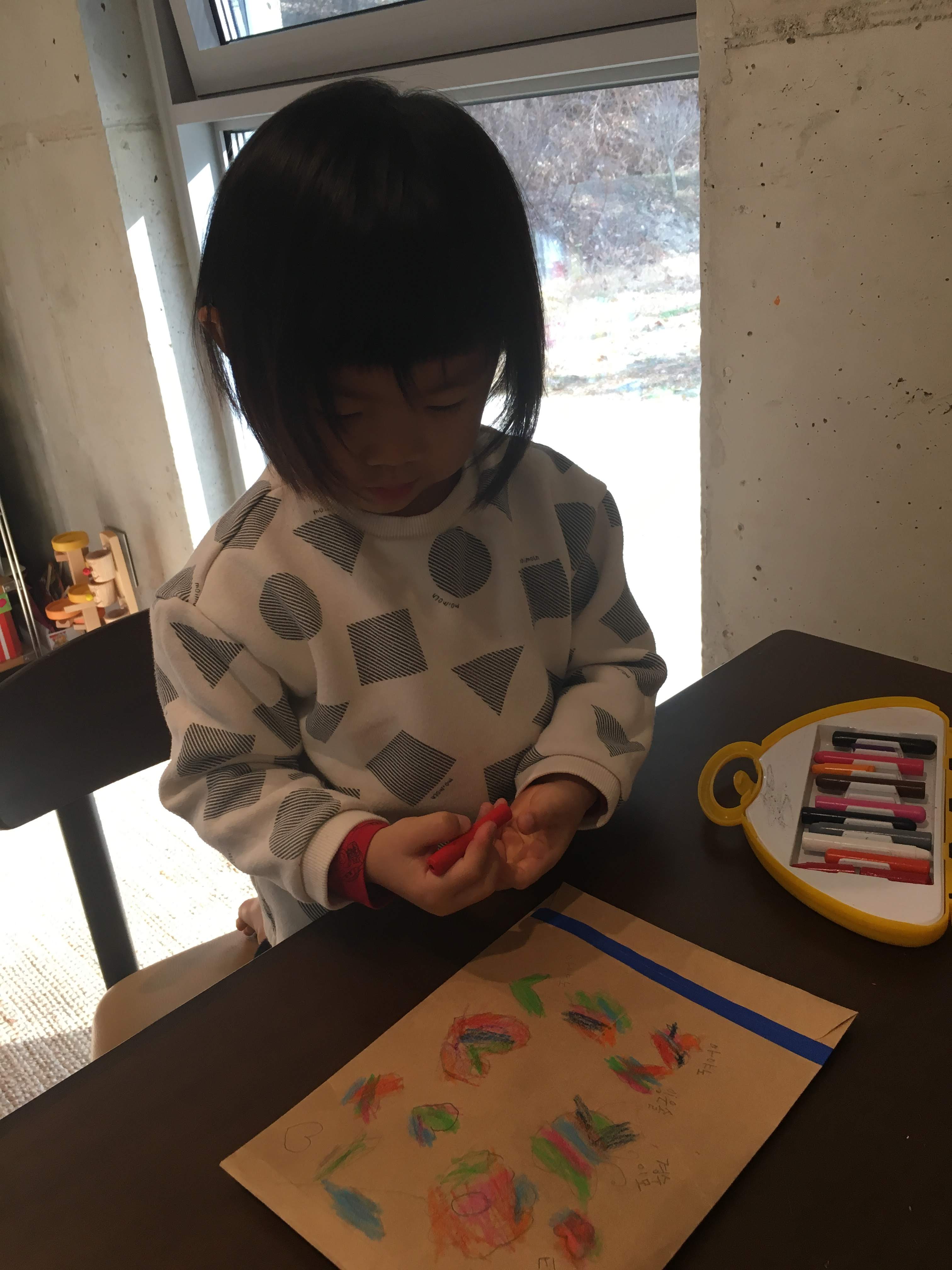 봉투안에 넣은 편지를 꺼내 스티커를 붙이고