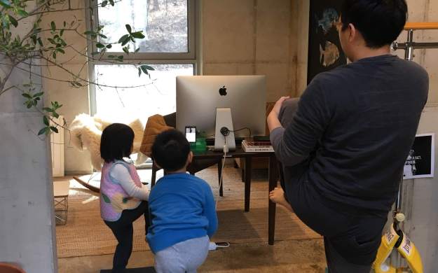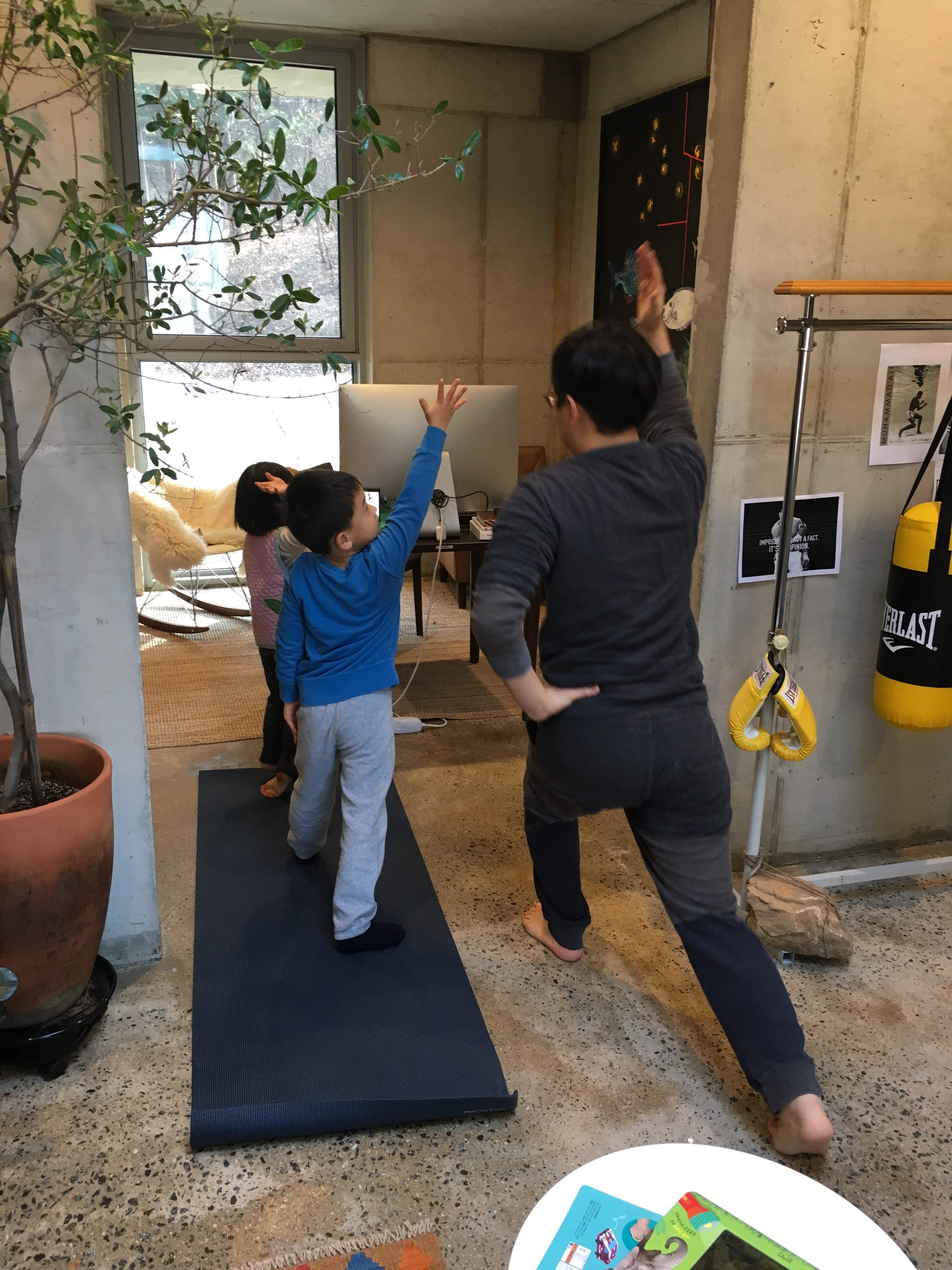 아빠가 운동매트를 펴면
