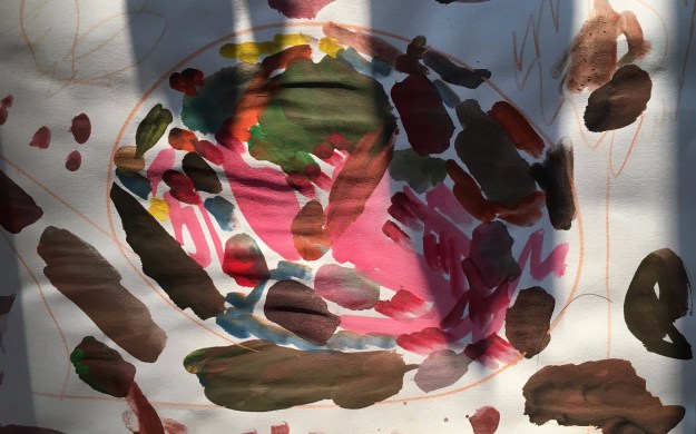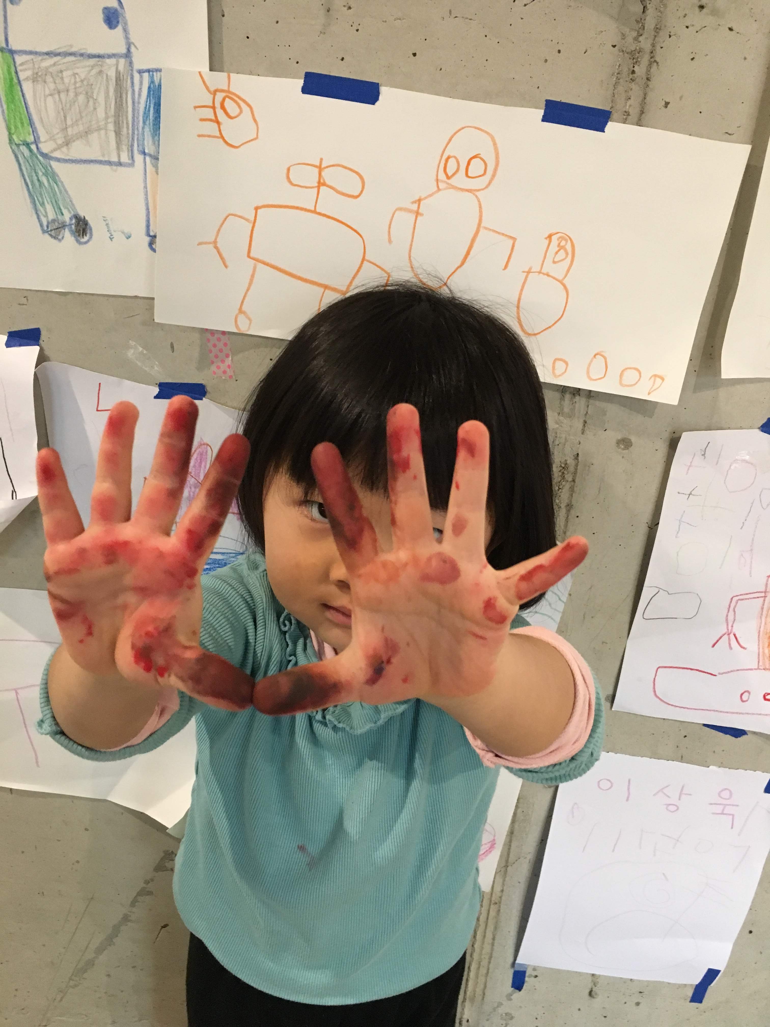손에 묻은 물감이 더 예쁘다며 한참을 바라봅니다.
