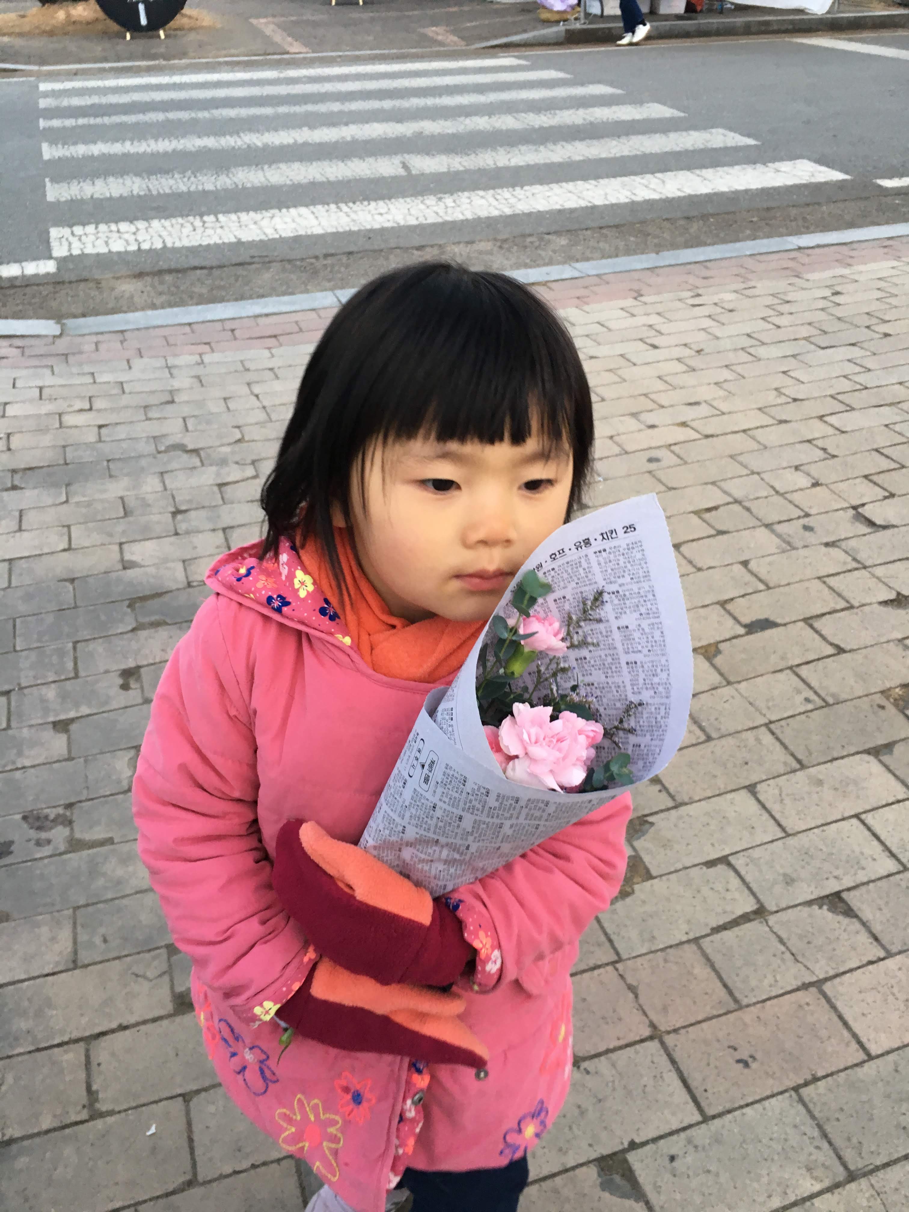 은솔이는 꽃 가게를 지나치지 않고 꽃을 고르고