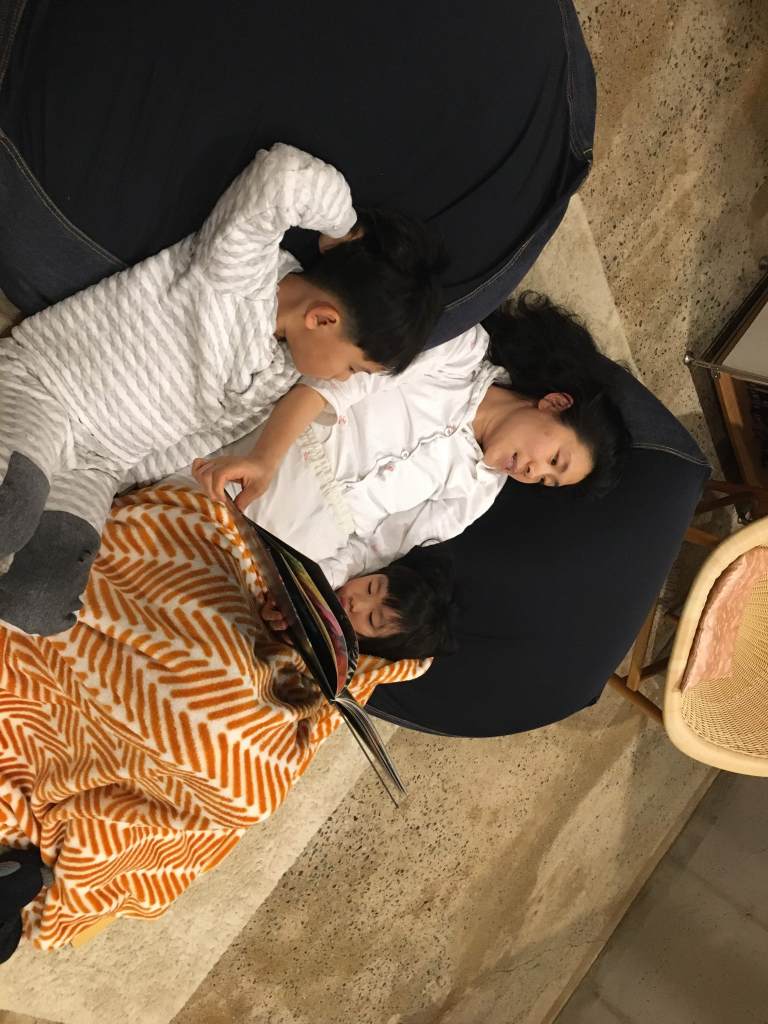 잠들기전 동화책 읽기.
