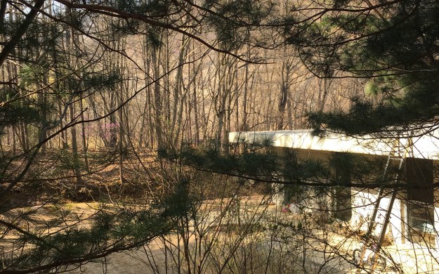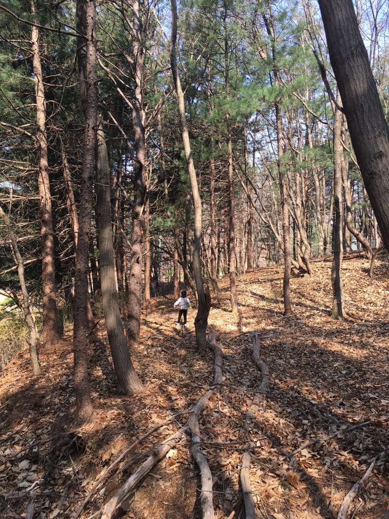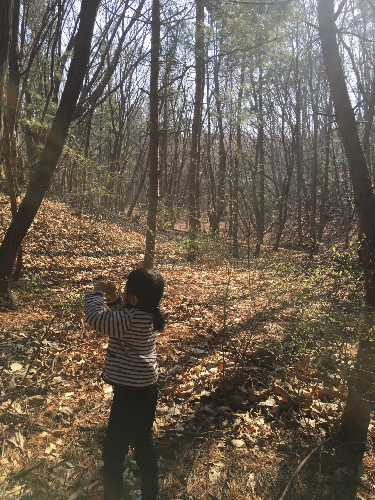 저 멀리 피어 있는 진달래를 꺾으려고 숲 안으로 들어갑니다.