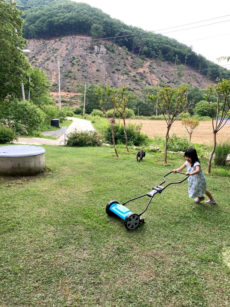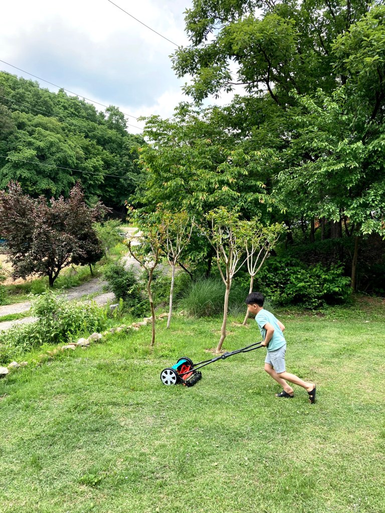 잔디도 조금씩 도와가며 깎고