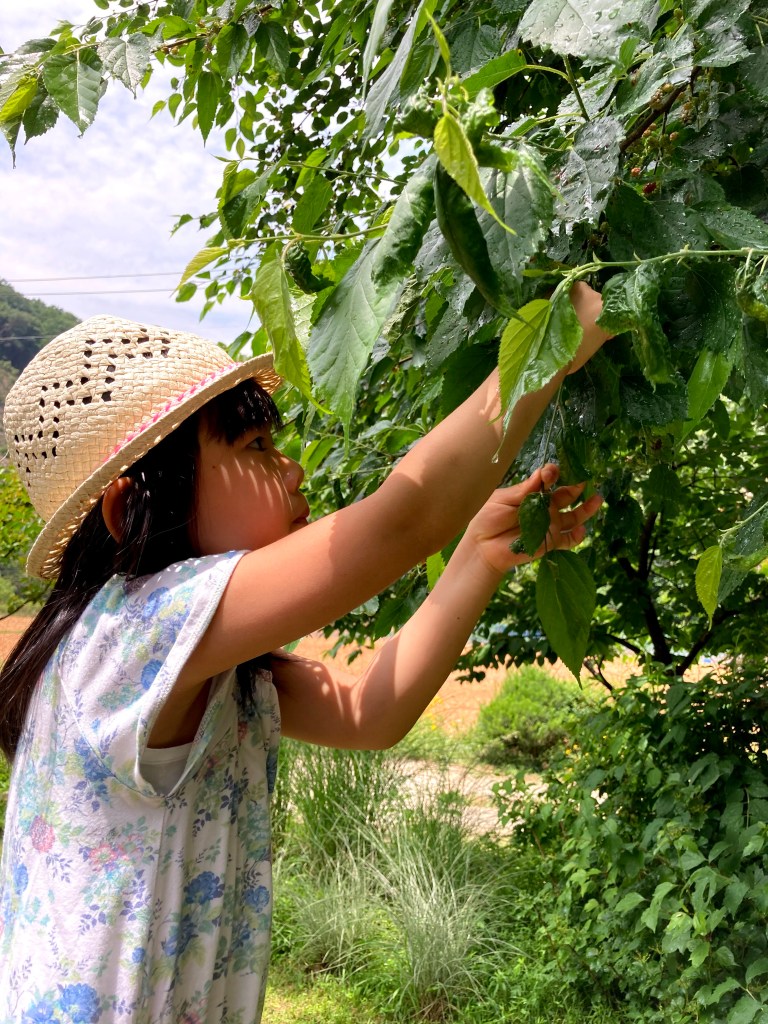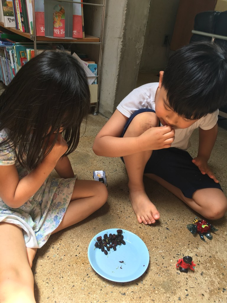 오후에는 마당에서 오디를 따서 먹고
