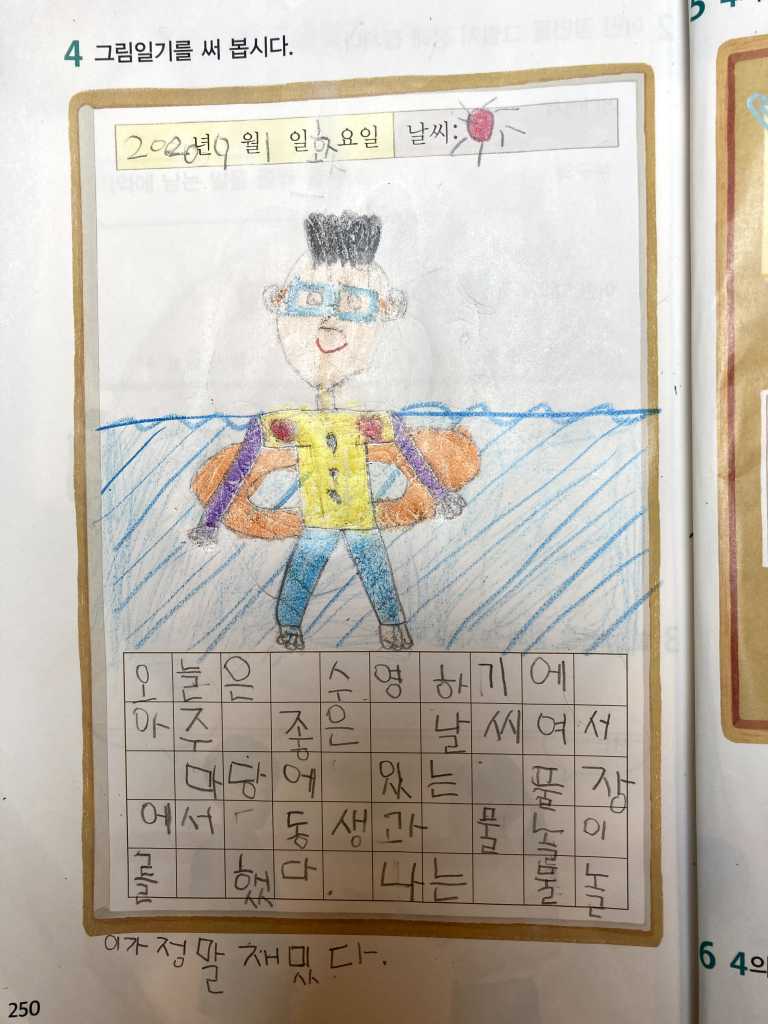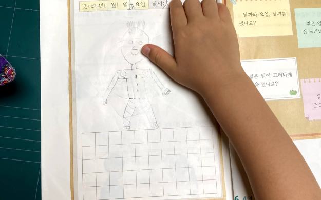 준성이의 그림일기 쓰기를 도와 준 은솔이.