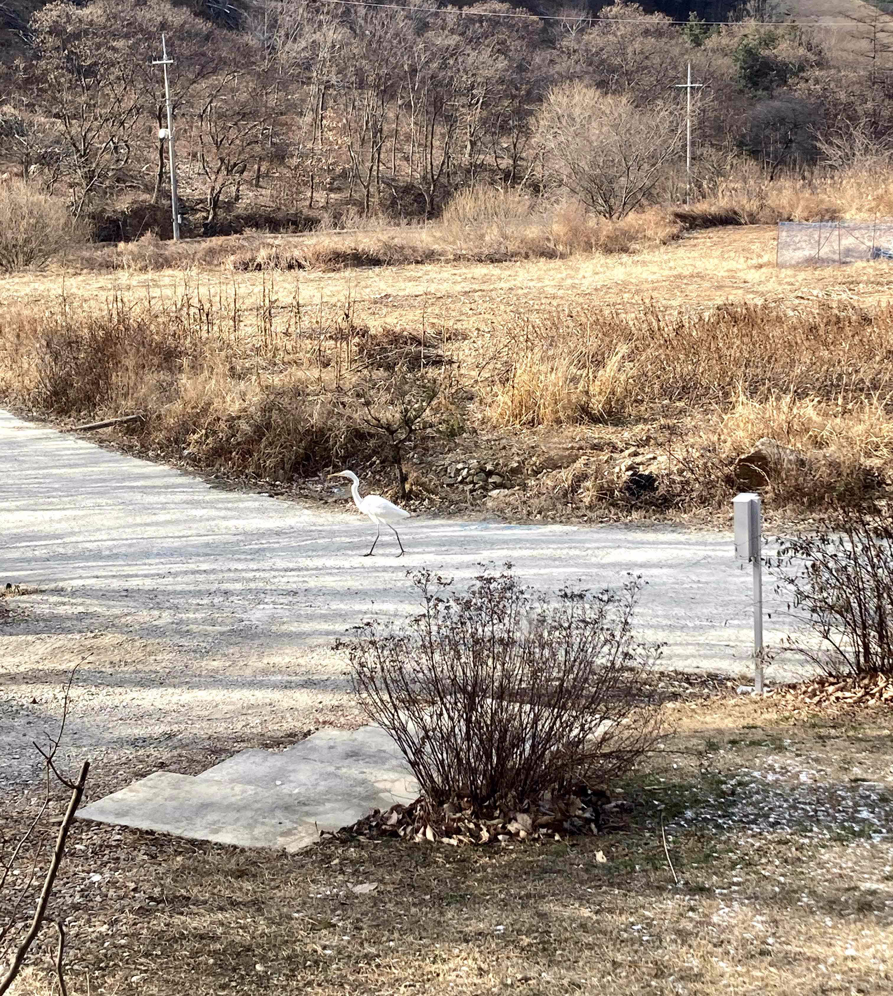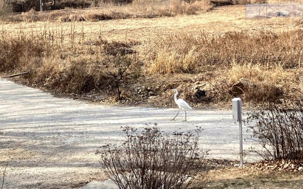 며칠째 백로가 집 앞을 서성이고 있다.