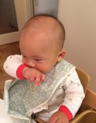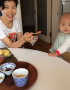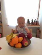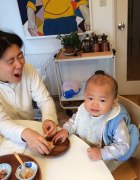 (빵, 치즈, 토마토, 콘스프, 바나나, 포도, 요구르트) 이젠, 자른 치즈를 손에 쥐어주면 흘리지 않고 잘 받아 먹는 준성. 그릇을 다 계속 읽기